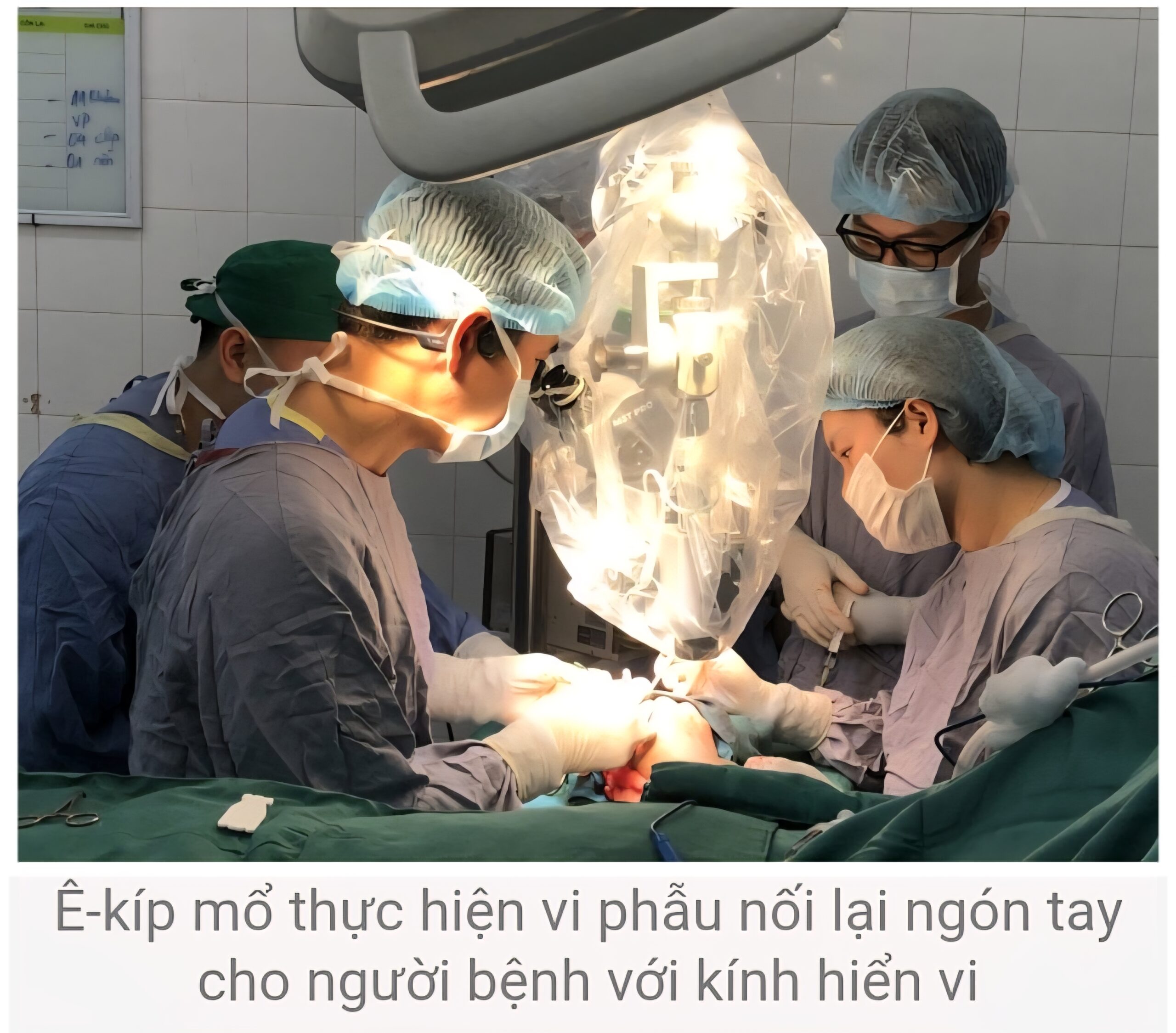 Tại Bệnh viện Hữu nghị Việt Đức, các chuyên gia đã đánh giá phần chi thể đứt rời và ghi nhận: phần chi thể đứt rời đã được sơ cứu – bảo quản đúng cách, khớp ngón tay còn mềm, cấu trúc mô được bảo toàn tốt. Bệnh viện lập tức hội chẩn đa chuyên khoa gồm phẫu thuật tạo hình thẩm mỹ, gây mê hồi sức, chấn thương chỉnh hình để đưa ra chiến lược xử trí tối ưu và quyết định thực hiện vi phẫu nối lại ngón tay cho người bệnh.